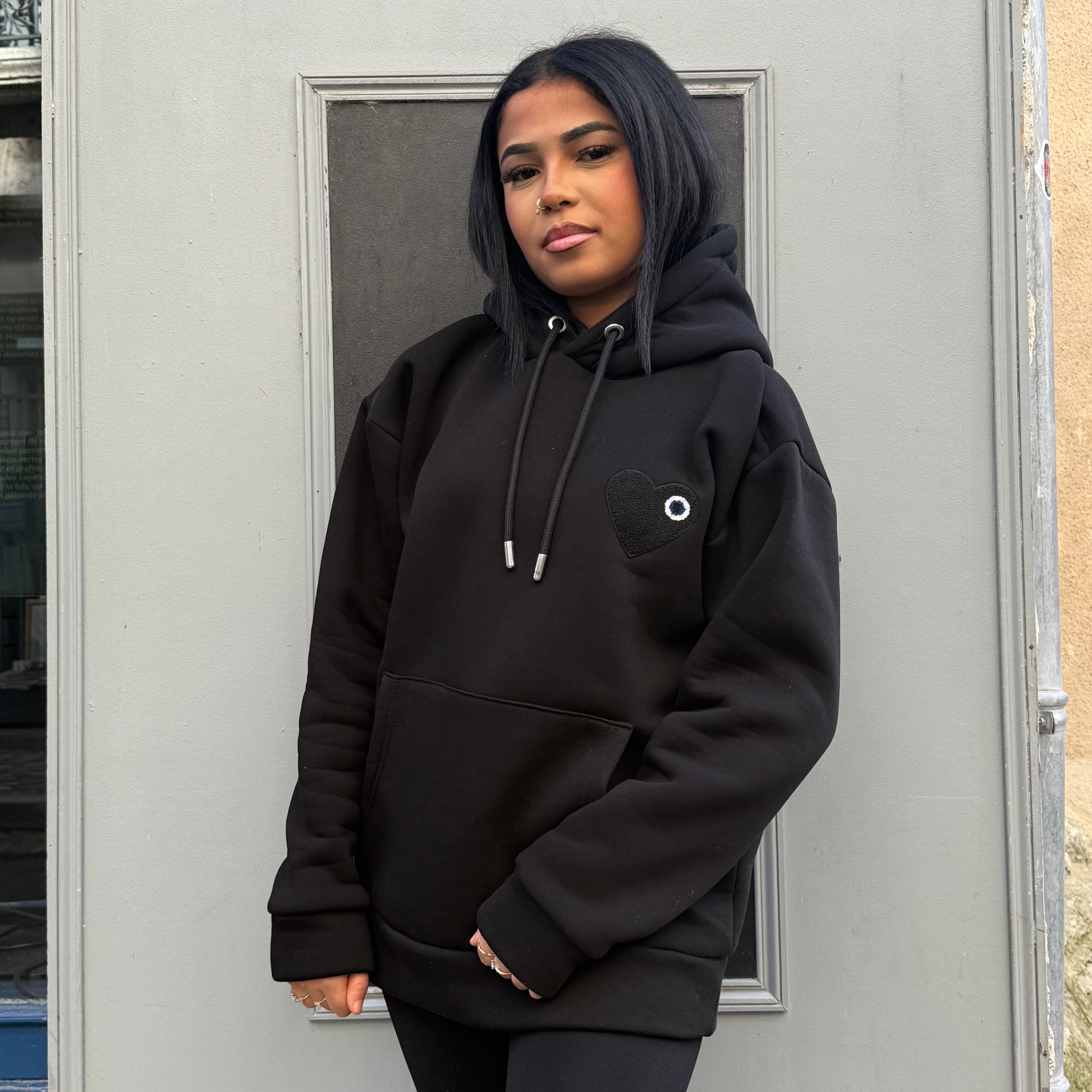 SWEAT NOIR CŒUR NOIR